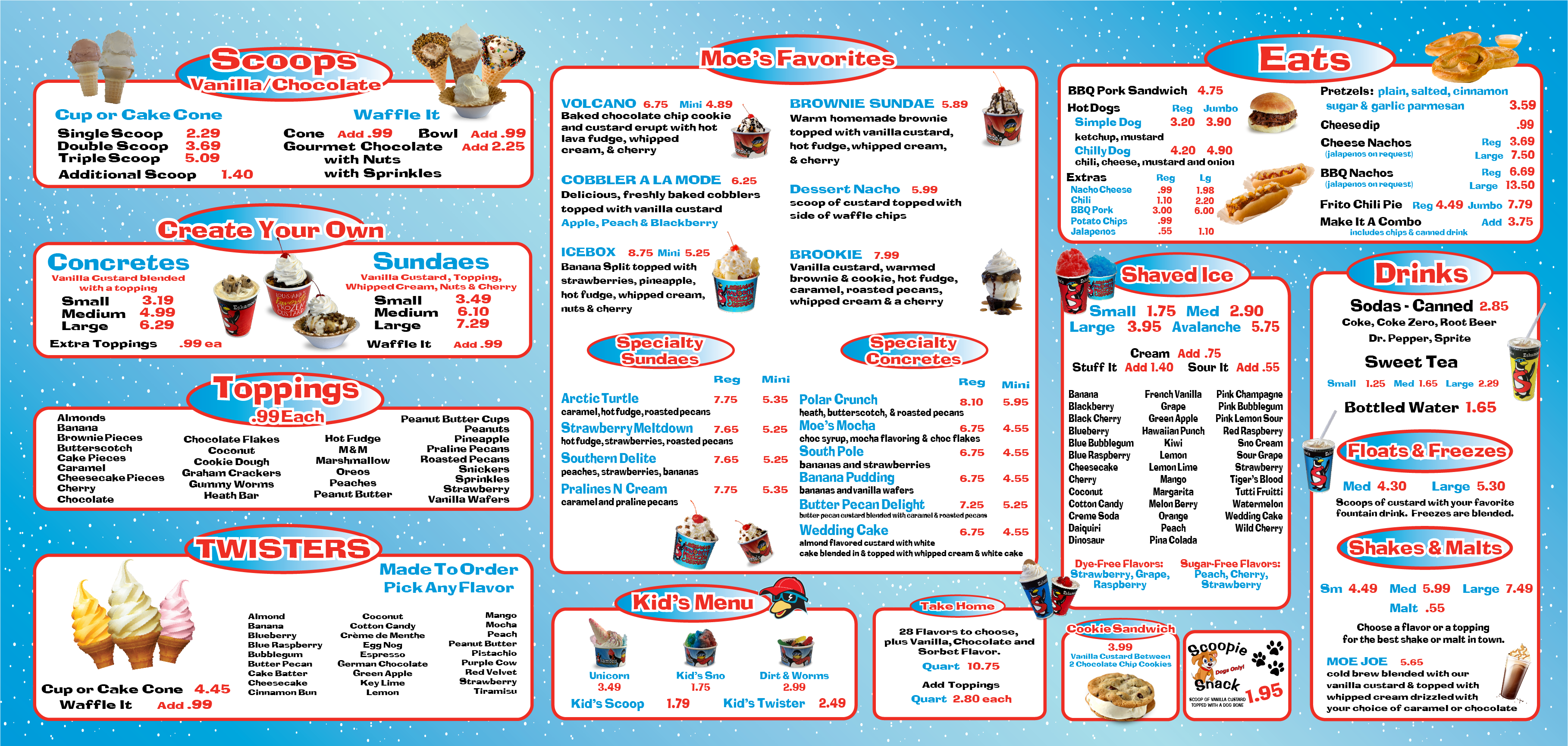 At Eskamoe’s, we serve fresh, local frozen custard made by the hour — never stored, always creamy, and crafted with care. Alongside our custard, we offer a full lineup of classic comfort favorites including hot dogs, Frito pies, nachos, and mini donuts.